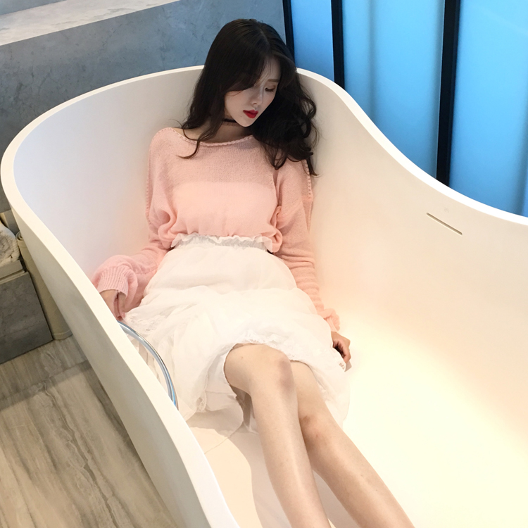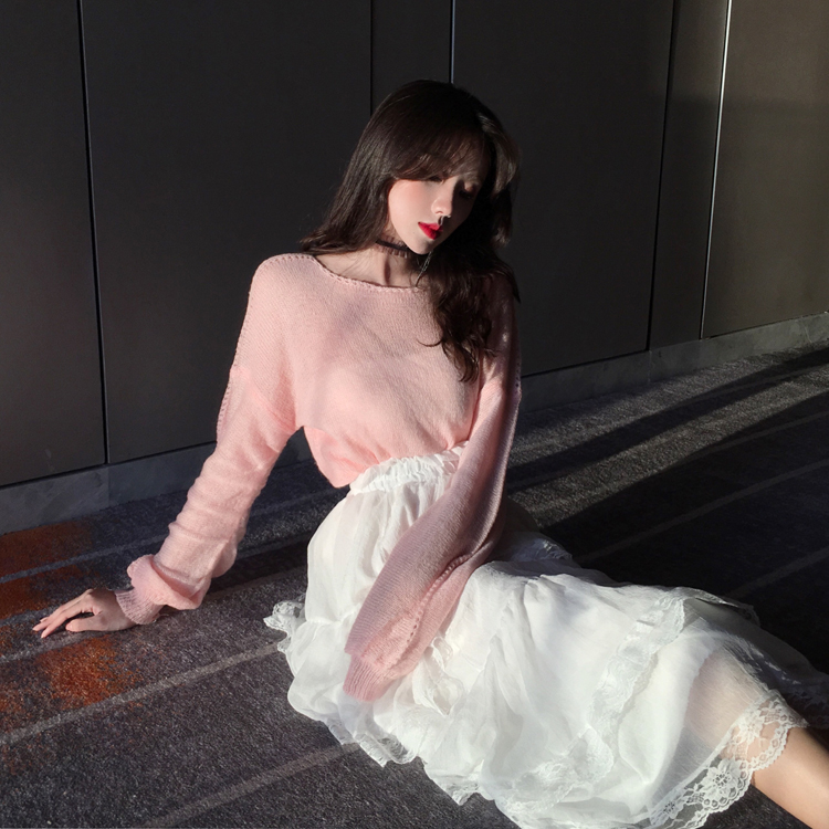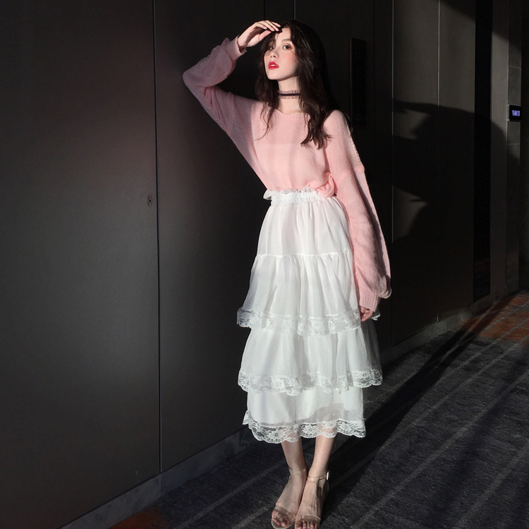 粉色毛衣|藍色毛衣|白色蕾絲蛋糕裙