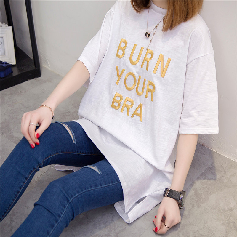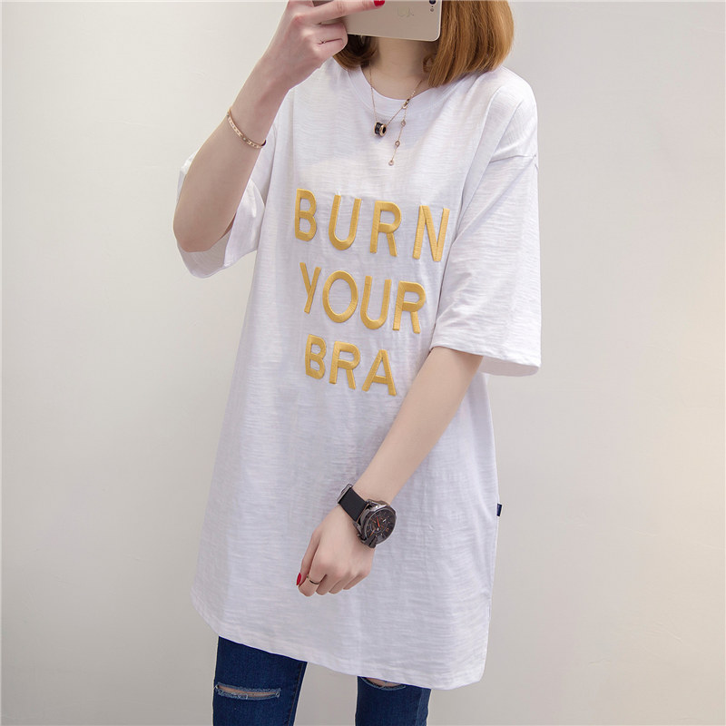/ 中長款短袖t恤女寬松韓版學生百搭夏季女裝新款白色體恤小衫