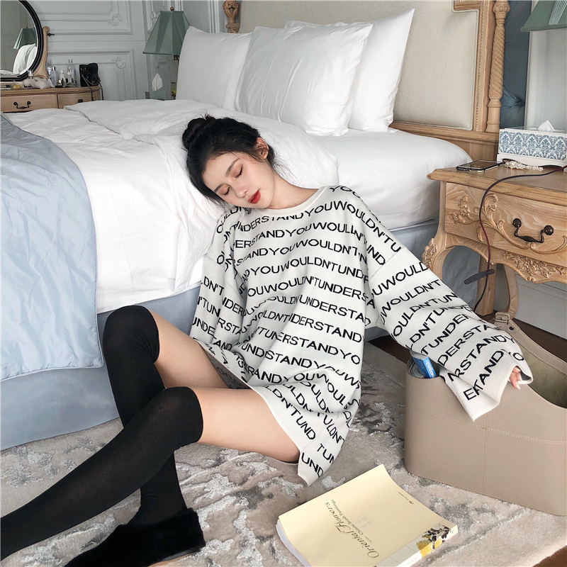 慵懶風新款女裝韓版秋季時尚套裝字母套頭毛衣西裝外套chic兩件套