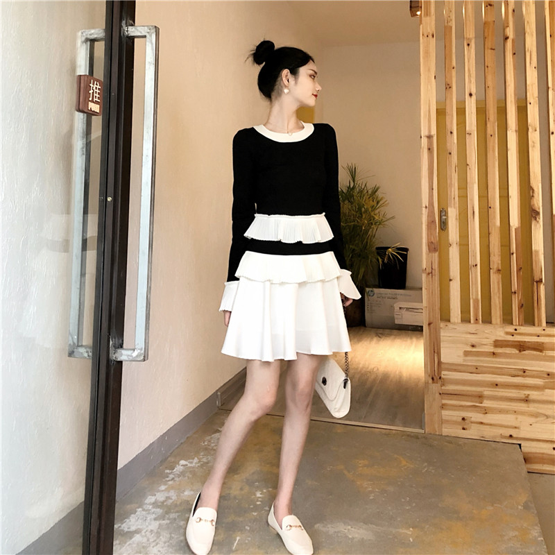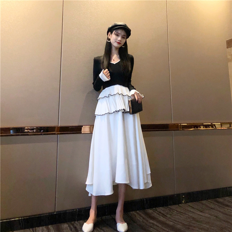 / 公主風韓國復古新款秋冬連衣裙女修身顯瘦氣質收腰蛋糕裙閨蜜裝潮