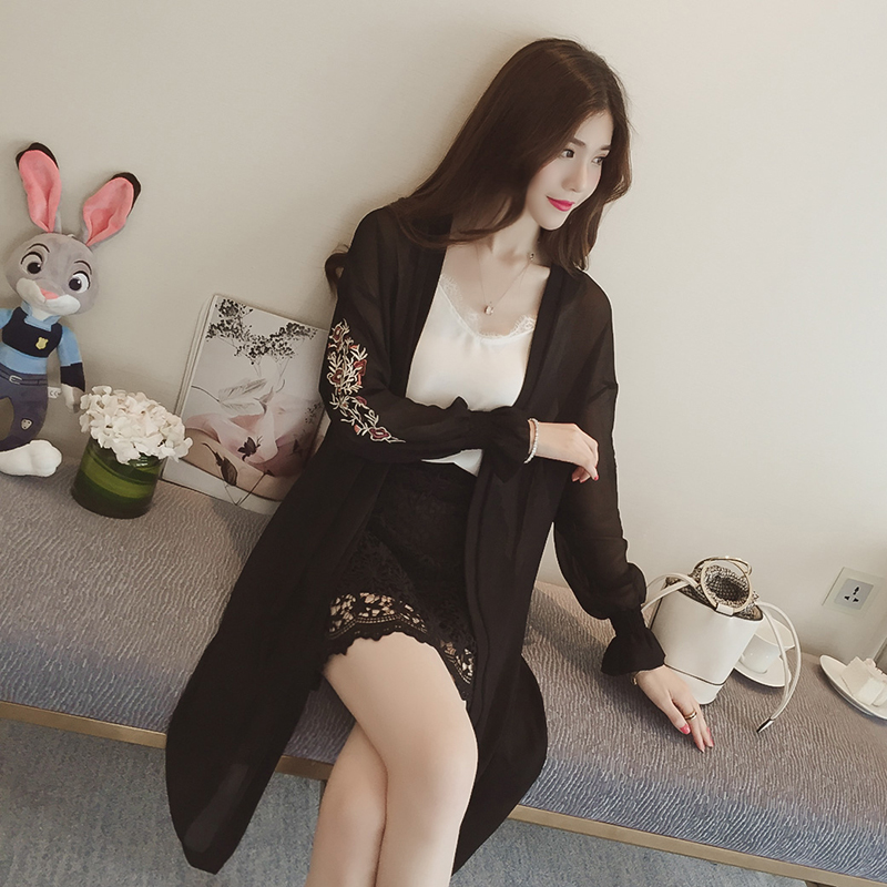 / 雪紡衫上衣女中長款寬松大碼防曬衣服夏天外搭空調衫薄款開衫外套