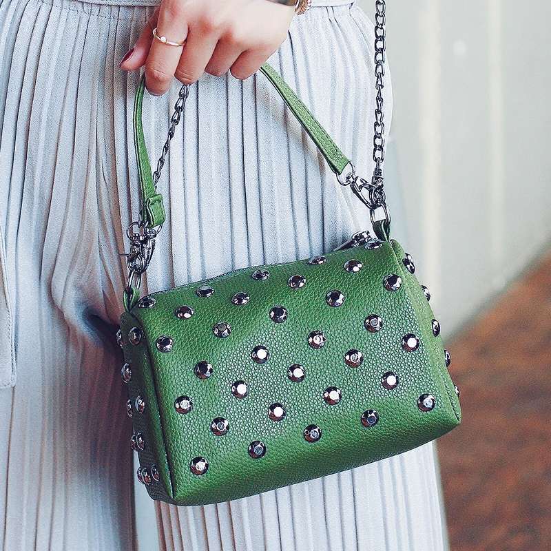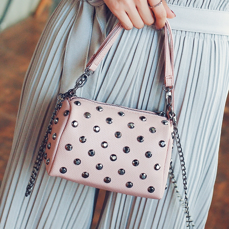 手提包包女新款潮迷你鏈條小方包鉚釘單肩女包韓版百搭斜挎包
