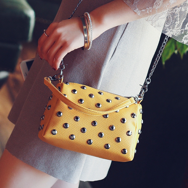 / 手提包包女新款潮迷你鏈條小方包鉚釘單肩女包韓版百搭斜挎包