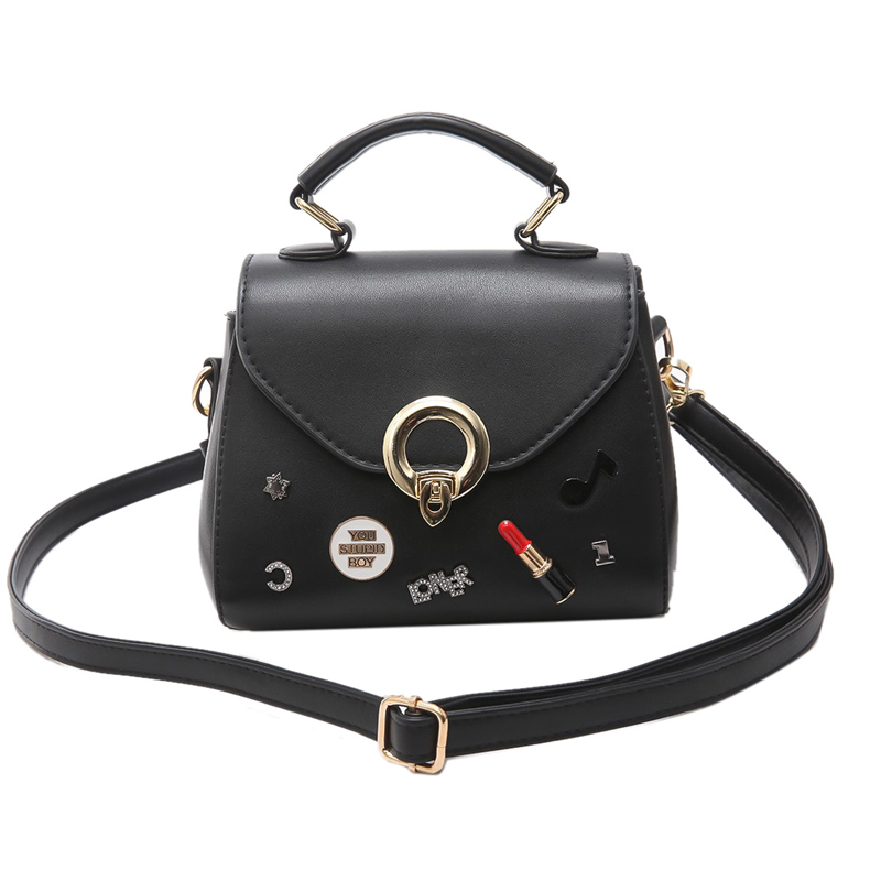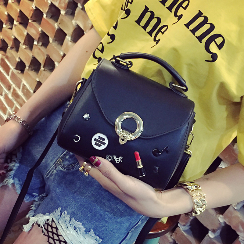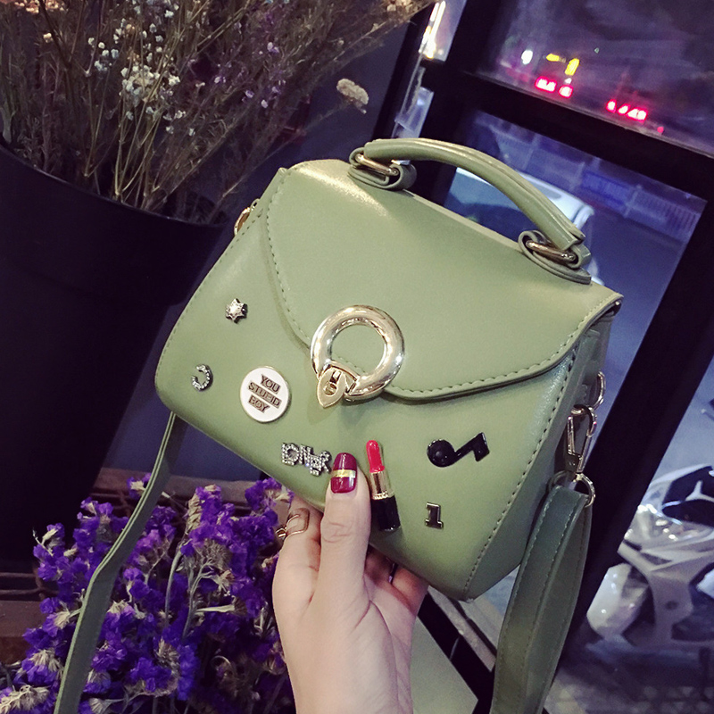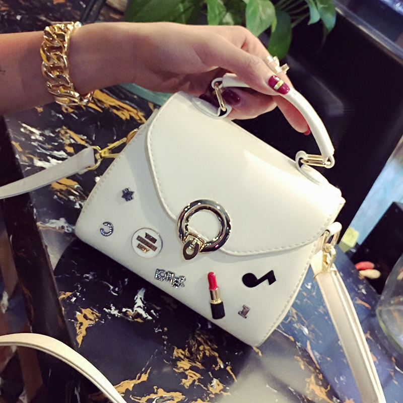 / 包包女新款潮個性徽章手提包鎖扣單肩女包小包韓版百搭斜挎包