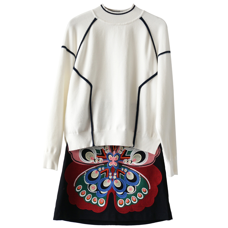 chic網紅兩件套裝俏皮2018秋季新款女時尚針織衫上衣裙子時髦套裝