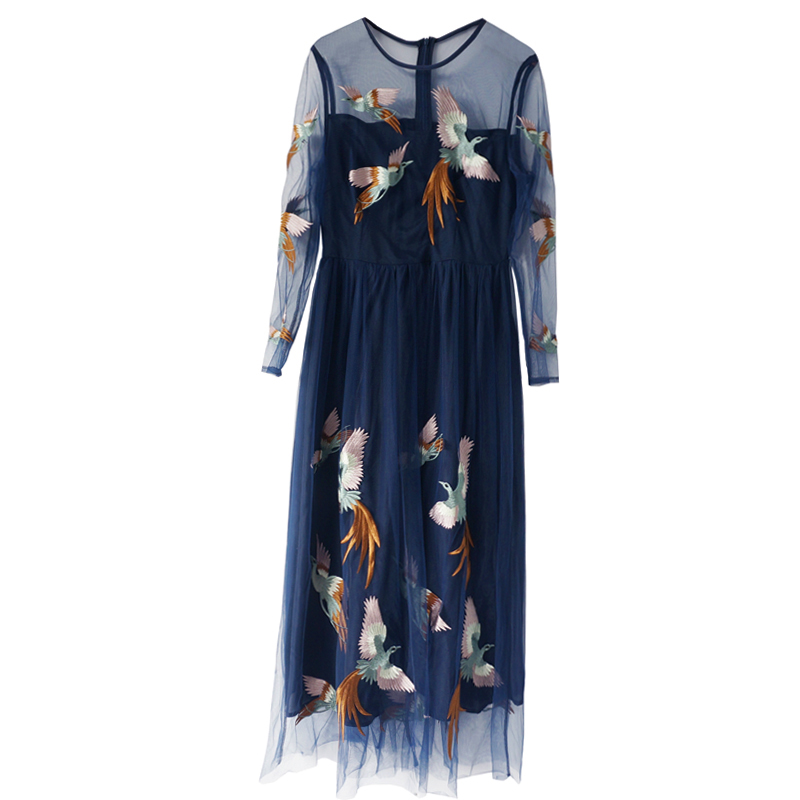 / 淑女氣質2018春季新款繡花拼接拉鏈連衣裙花色圓領不規則裙潮