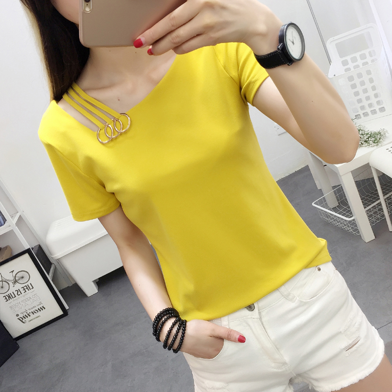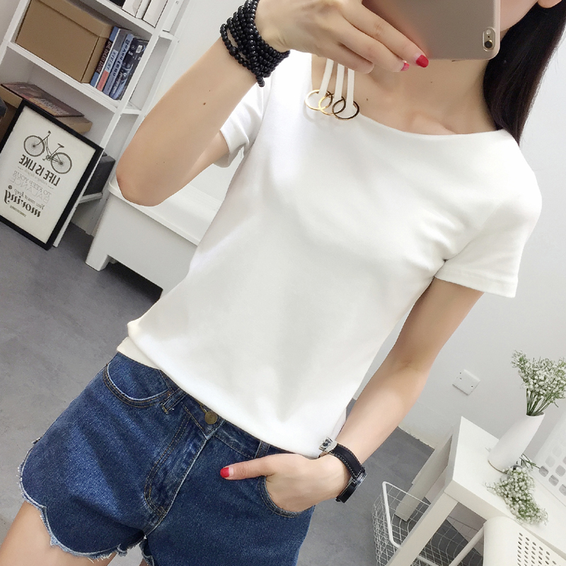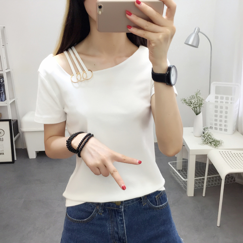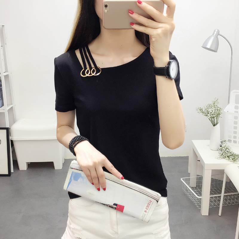 時尚T恤女短袖2017新款潮韓版修身顯瘦休閑心機上衣夏季體恤