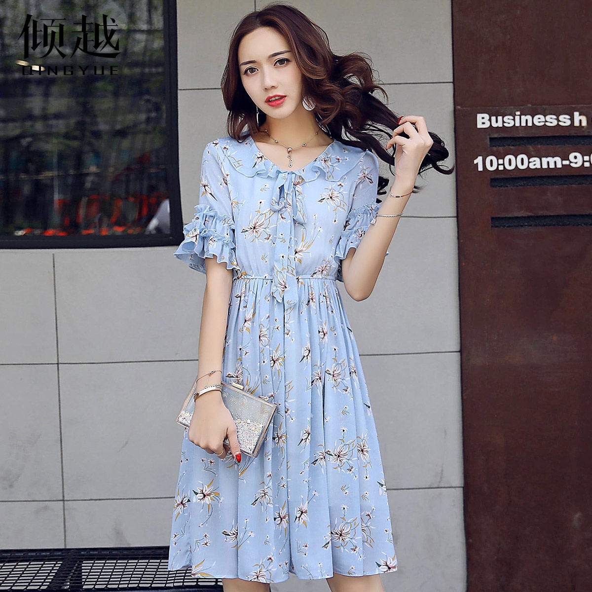 / 雪紡連衣裙女夏2017夏季新款女裝韓版小清新裙子收腰荷葉袖碎花裙