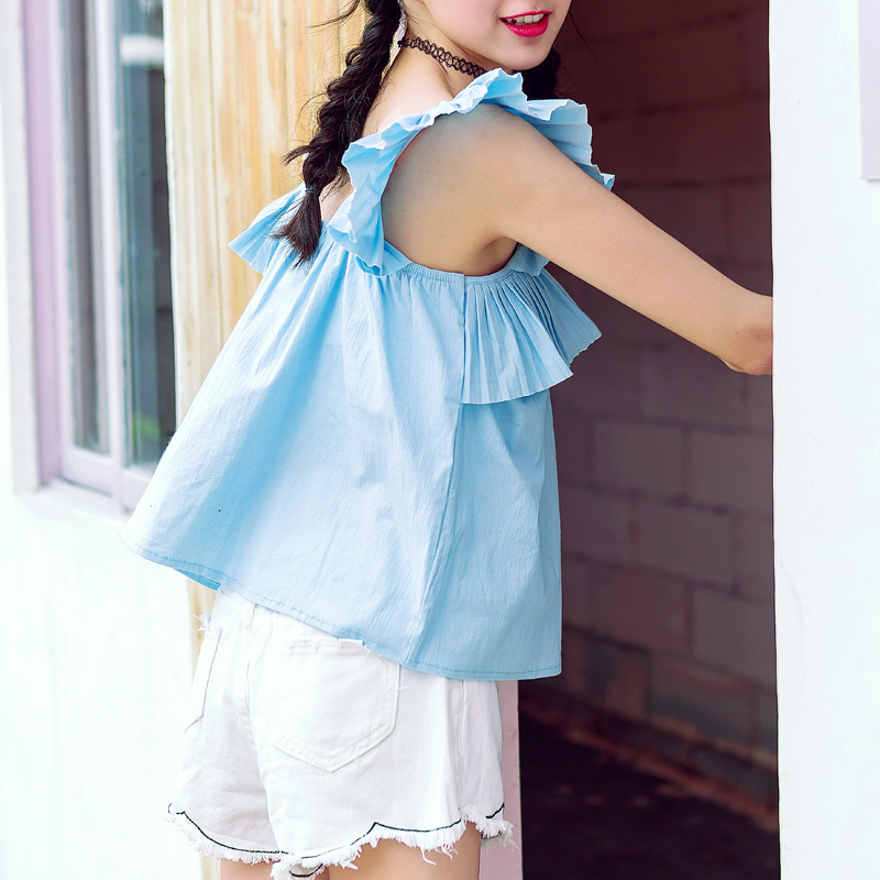 條紋木耳邊吊帶背心2017夏裝新款韓版女裝學生小清新短款百搭上衣