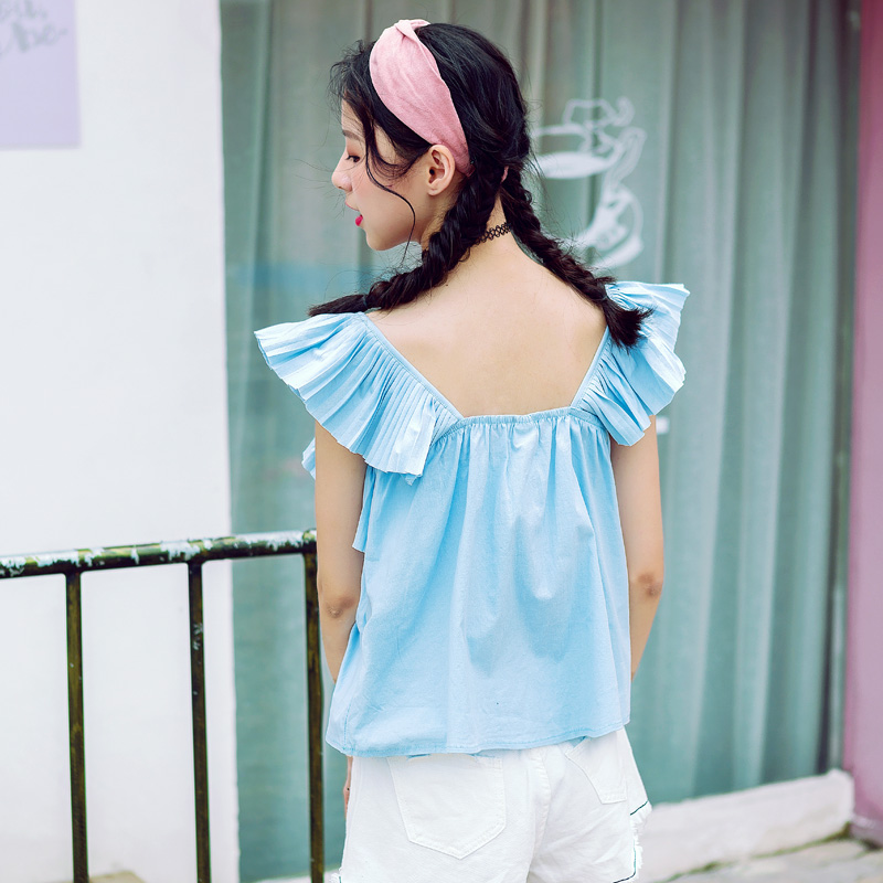 / 新款夏季百搭韓國褶皺背心簡約無袖打底衫女寬松小清新上衣