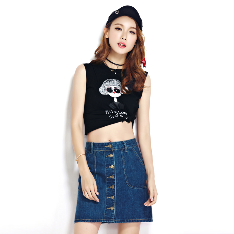 韓版高腰牛仔裙半身裙女單排扣A字裙包臀短裙顯瘦學生大碼半裙夏