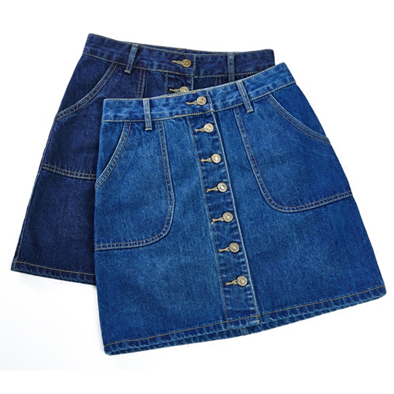 / 韓版高腰牛仔裙半身裙女單排扣A字裙包臀短裙顯瘦學生大碼半裙夏