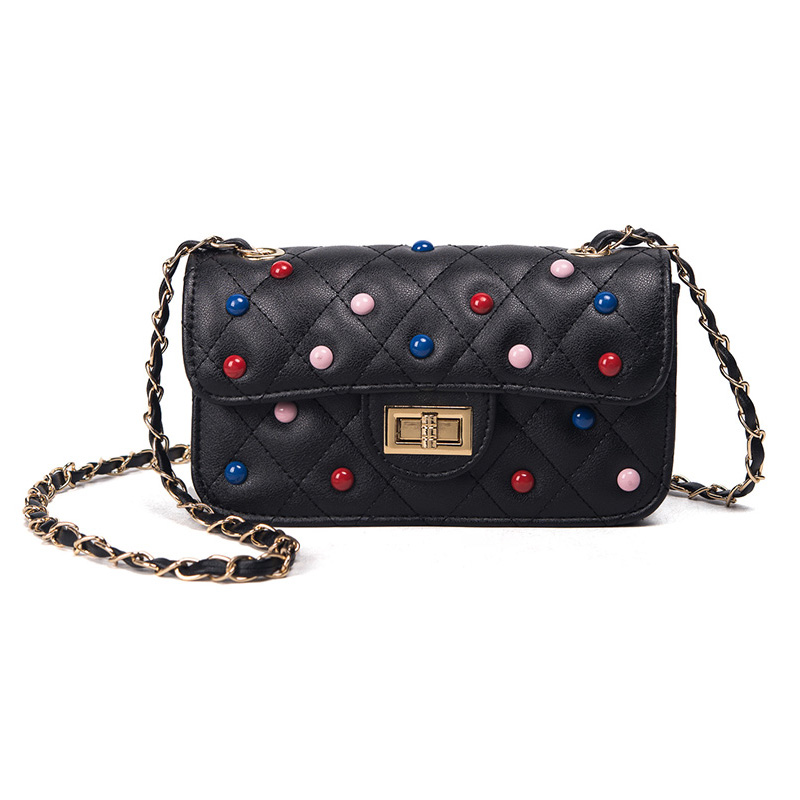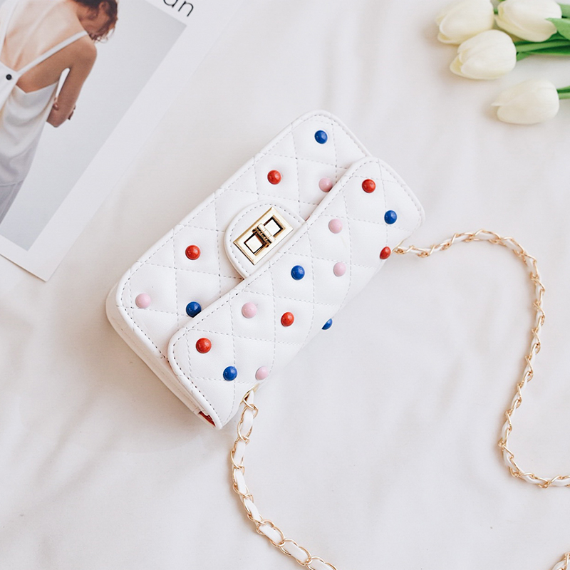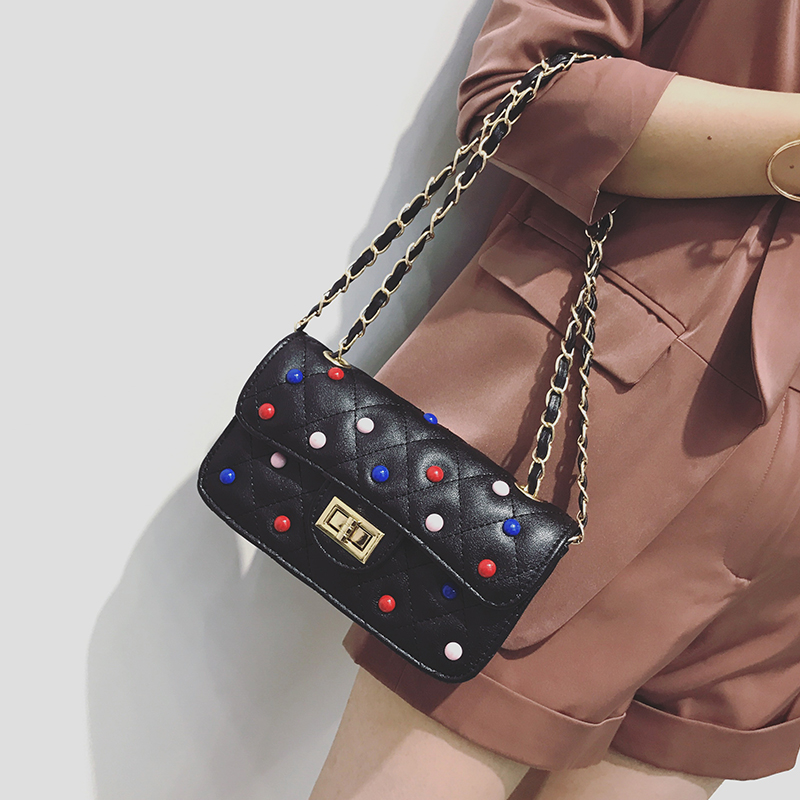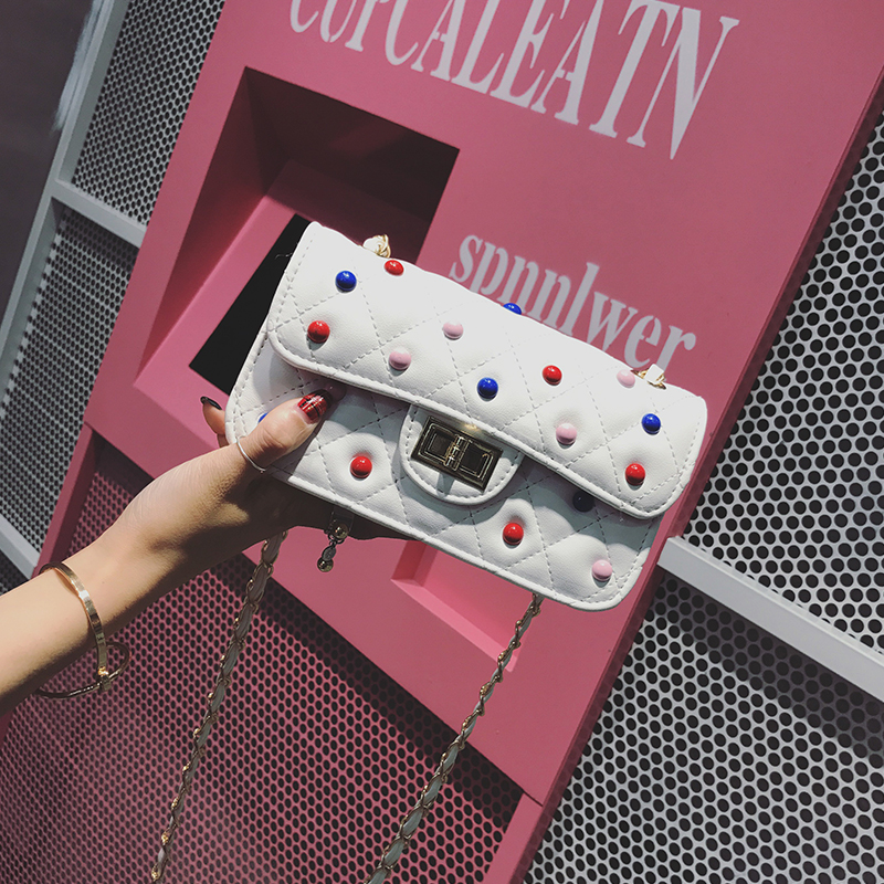 / 夏季新款韓版撞色鉚釘單肩女包小包包鏈條斜挎包女迷你小方包
