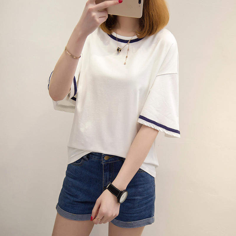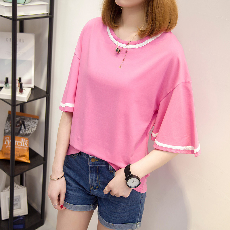 / 夏裝新款女裝寬松t恤女中長袖半袖韓版體恤衫百搭上衣女夏潮