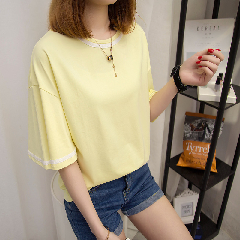 夏裝新款女裝寬松t恤女中長袖半袖韓版體恤衫百搭上衣女夏潮