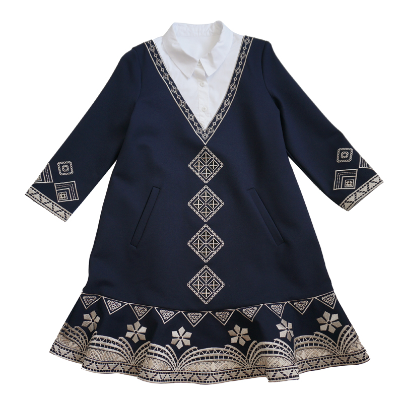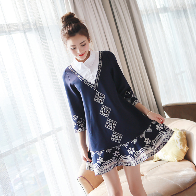 / 刺繡連衣裙女秋2018新款復古顯瘦學院中國風中長襯衫領裙子潮