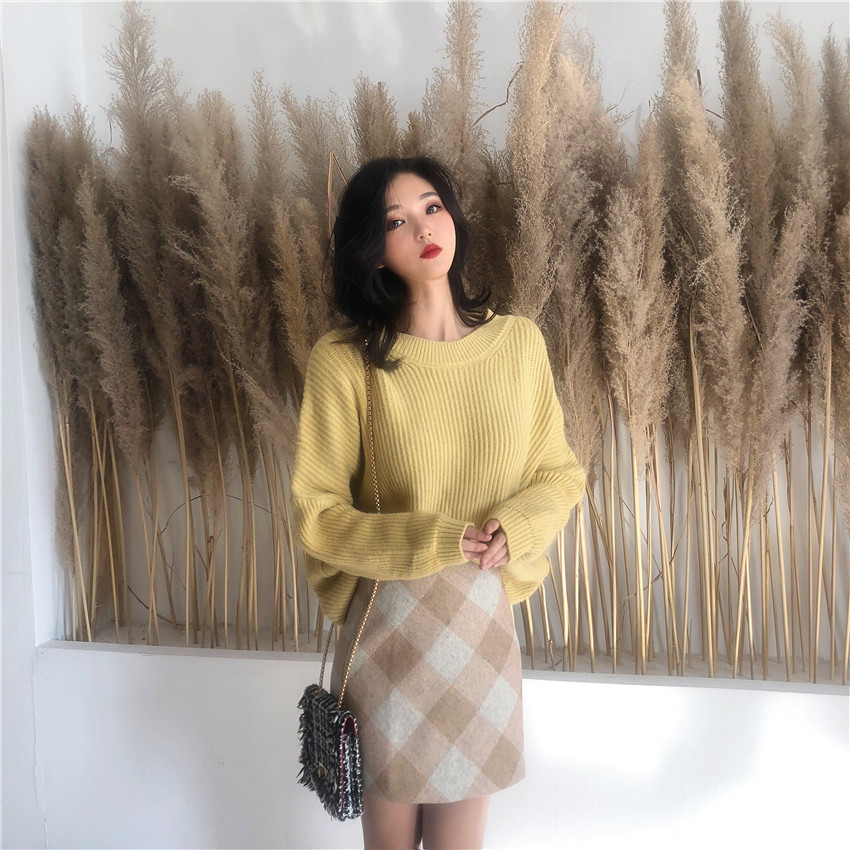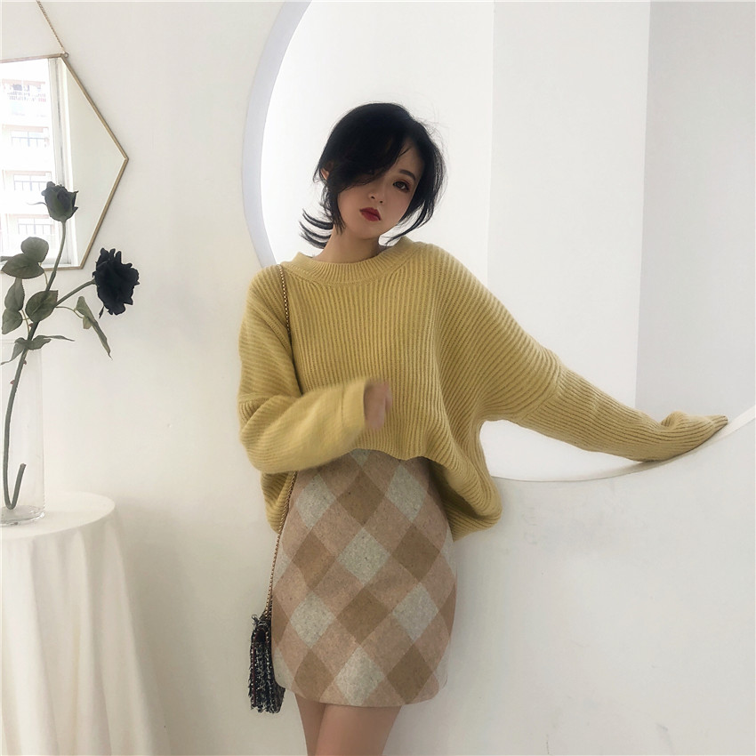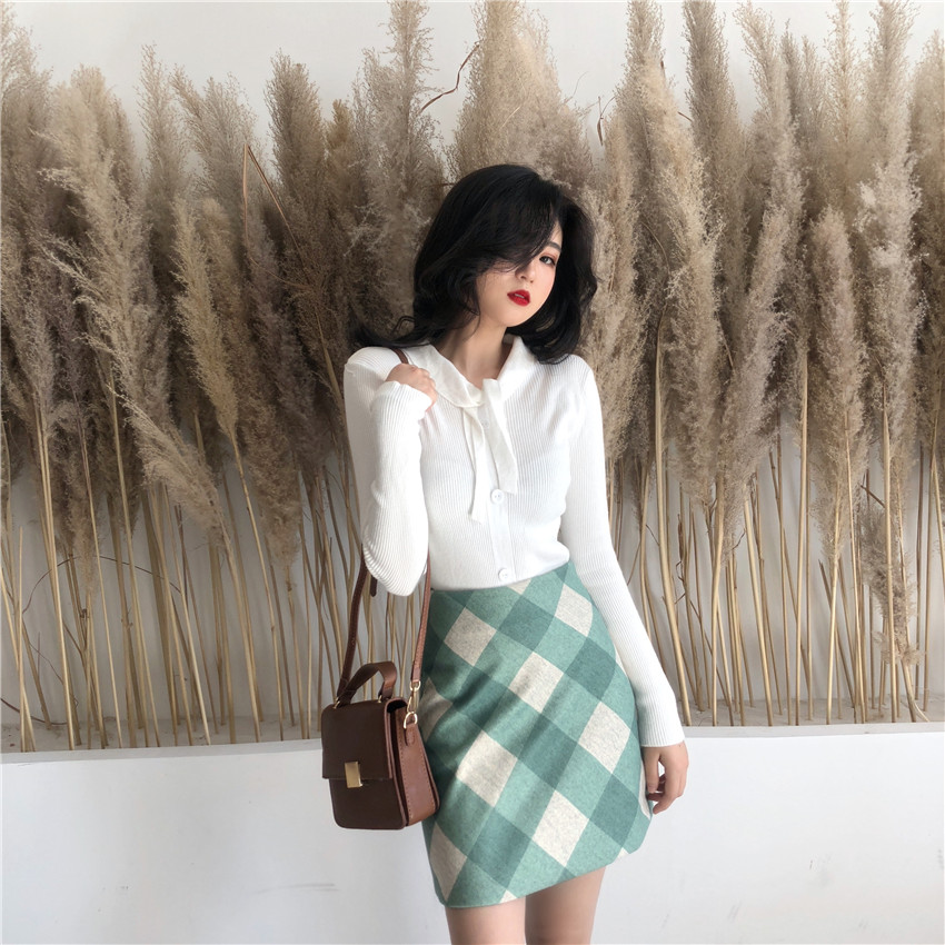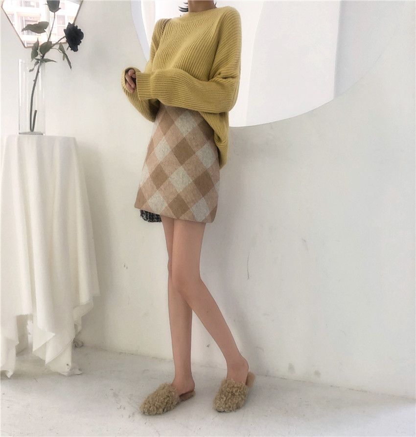 裙子女復古chic秋冬新款一步裙chic高腰百搭菱形格子毛呢短裙女潮