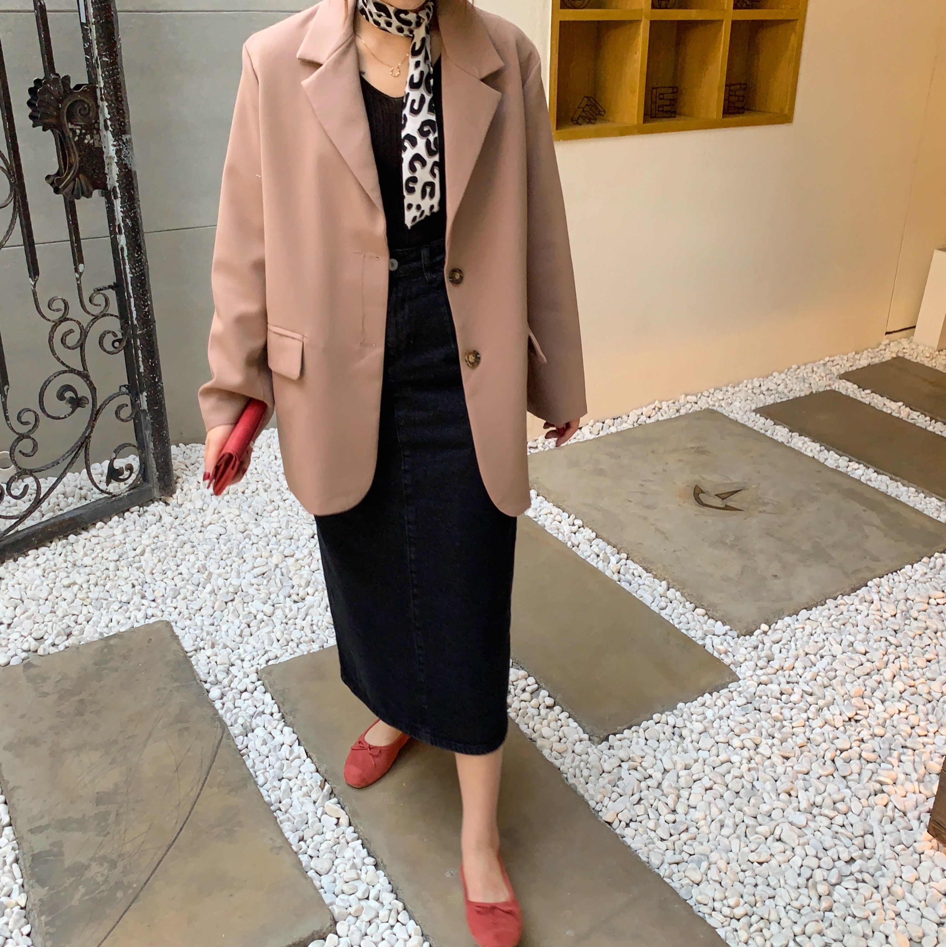 / 雙面豹紋百搭斜腳圍巾飄帶外套寬松港風復古小西服時尚套裝兩件套
