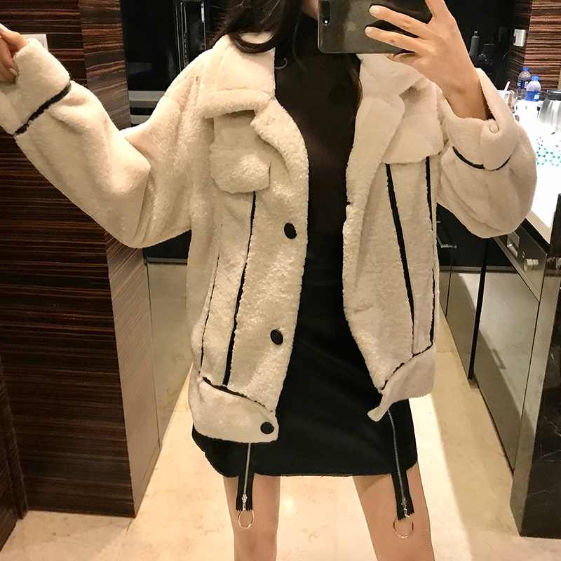 / 秋冬新款韓版寬松加厚時尚女裝百搭復古chic開衫單排扣長袖外套潮