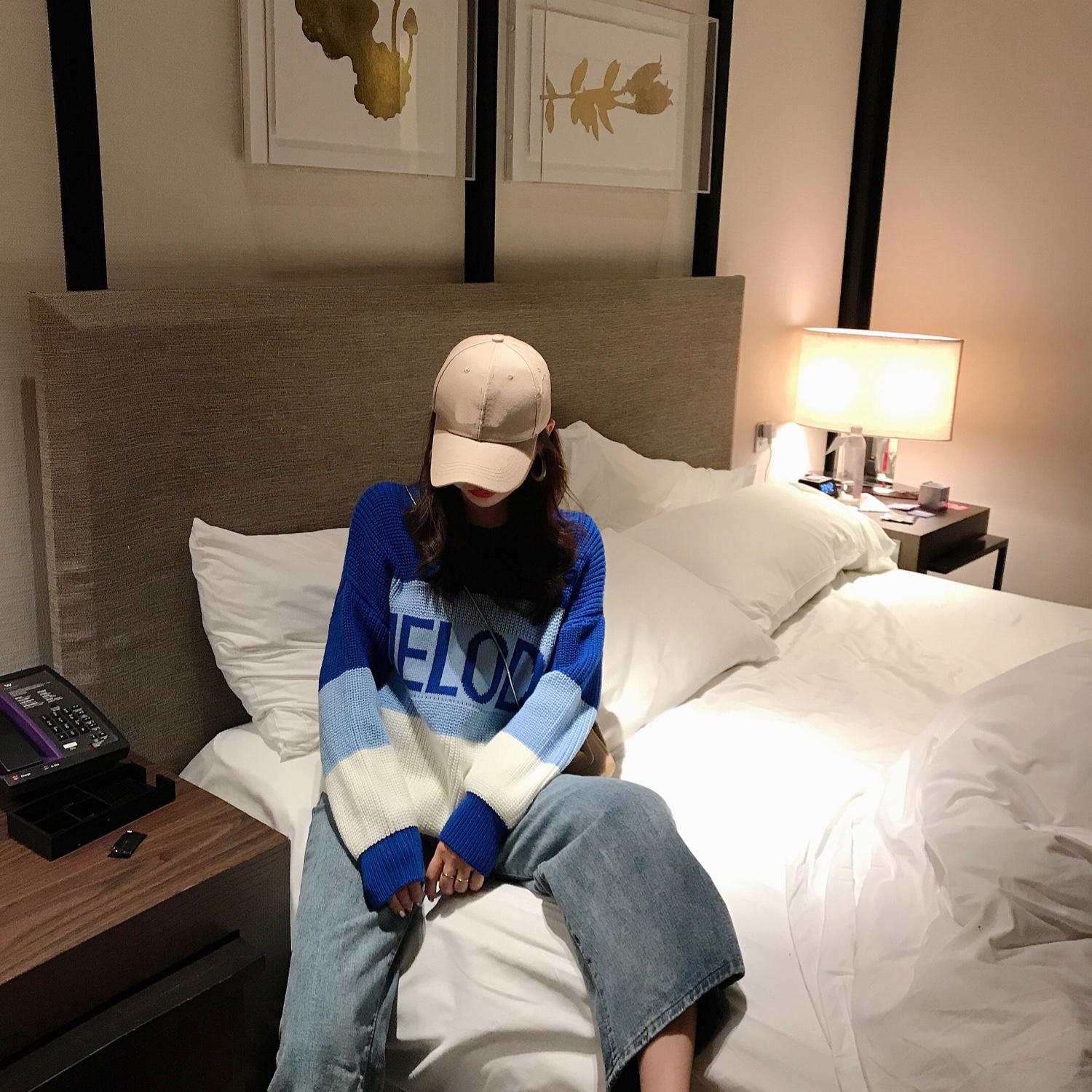 / 2018韓版時尚新款早秋針織衫女長袖寬松漸變色字母圓領打底毛衣潮