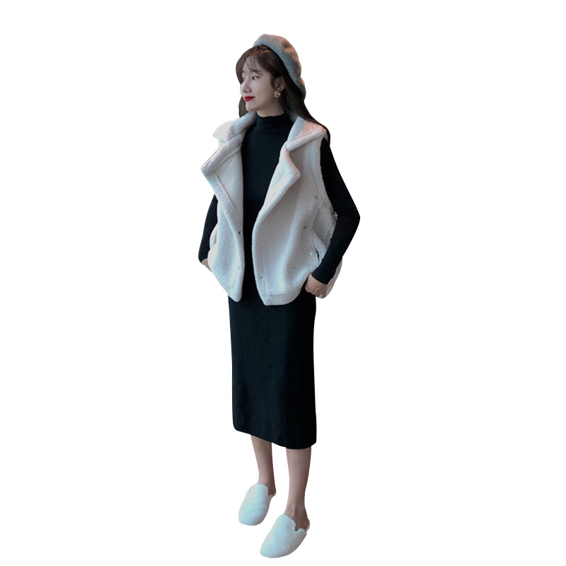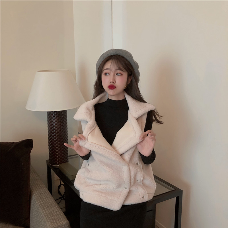2018新款秋冬韓版大翻領馬甲女毛絨背心馬夾無袖坎肩外套時尚套裝