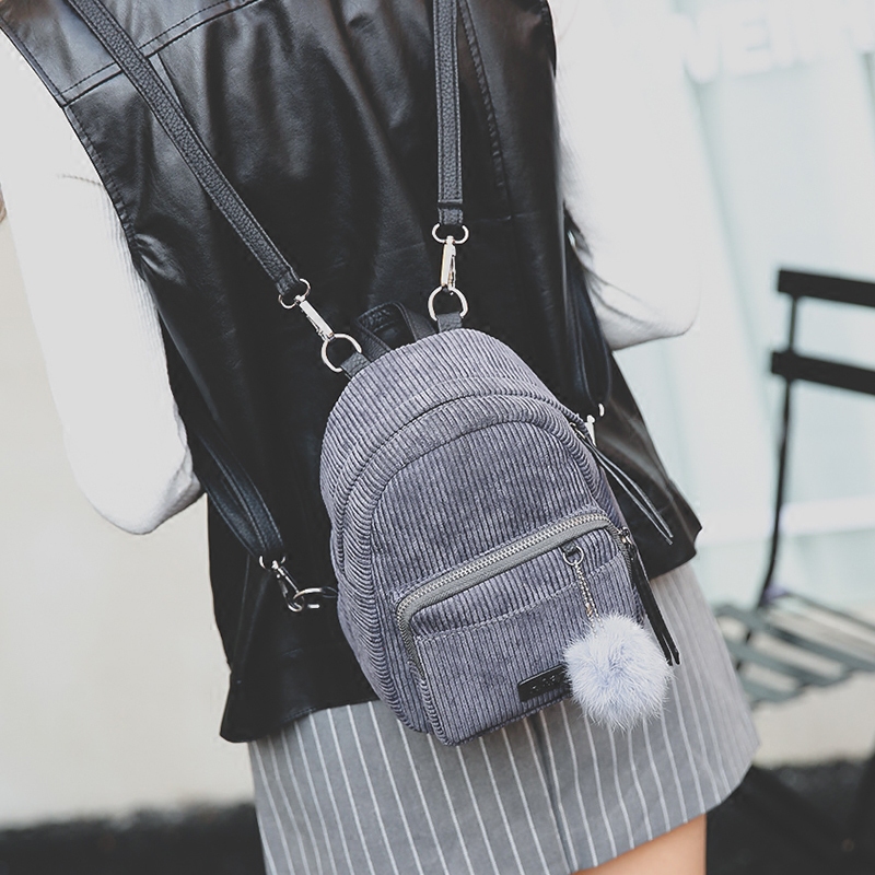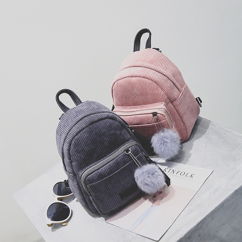 / 新款韓版迷你雙肩包女時尚條絨學院風小包包休閑背包可愛書包