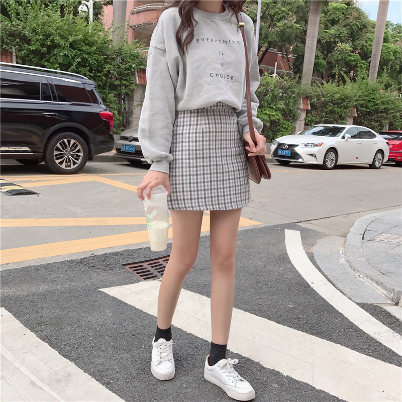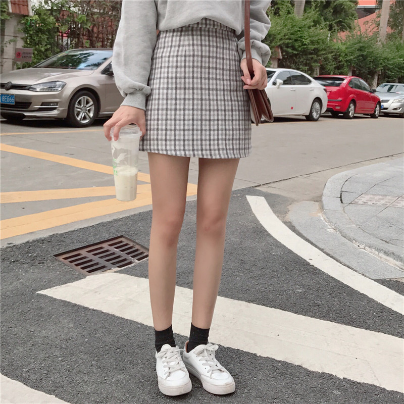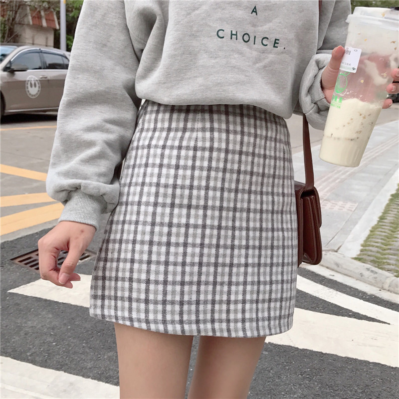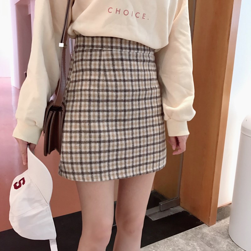 高腰裙子韓版百搭短裙時尚chic冬季新款毛呢顯瘦半身裙A字裙女潮