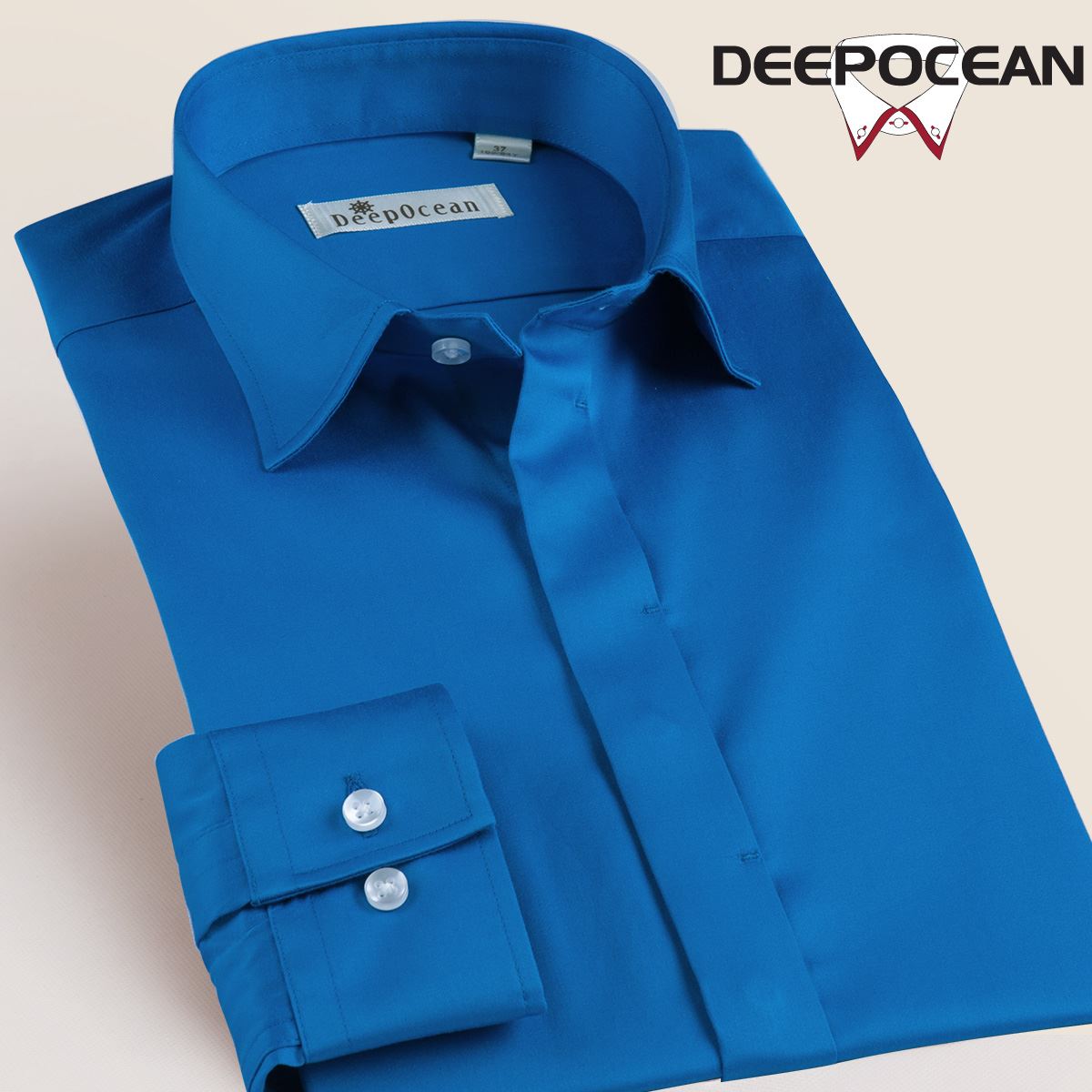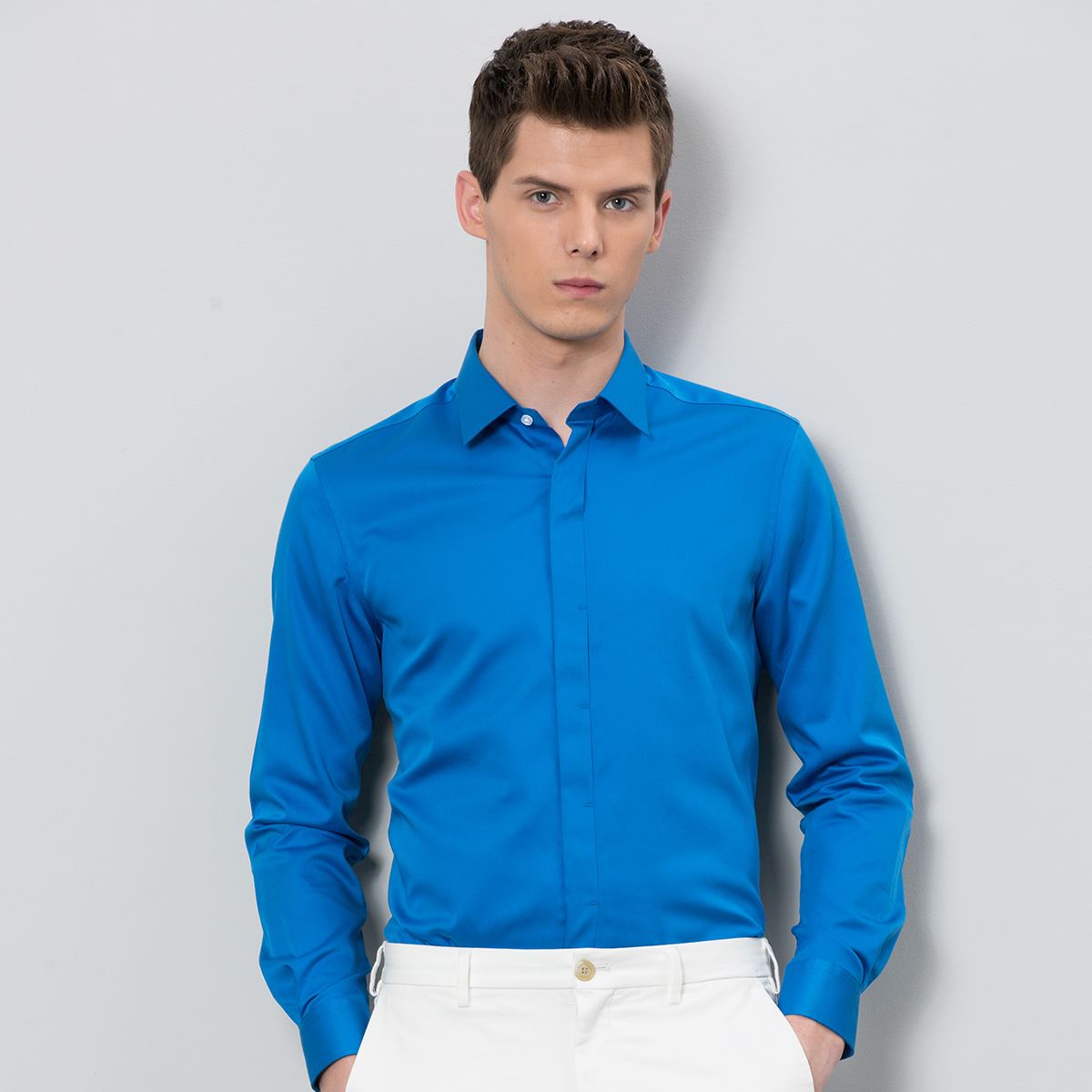 / 秋季新品絲光棉小方領男士長袖商務正裝純色襯衣純棉府綢男裝襯衫