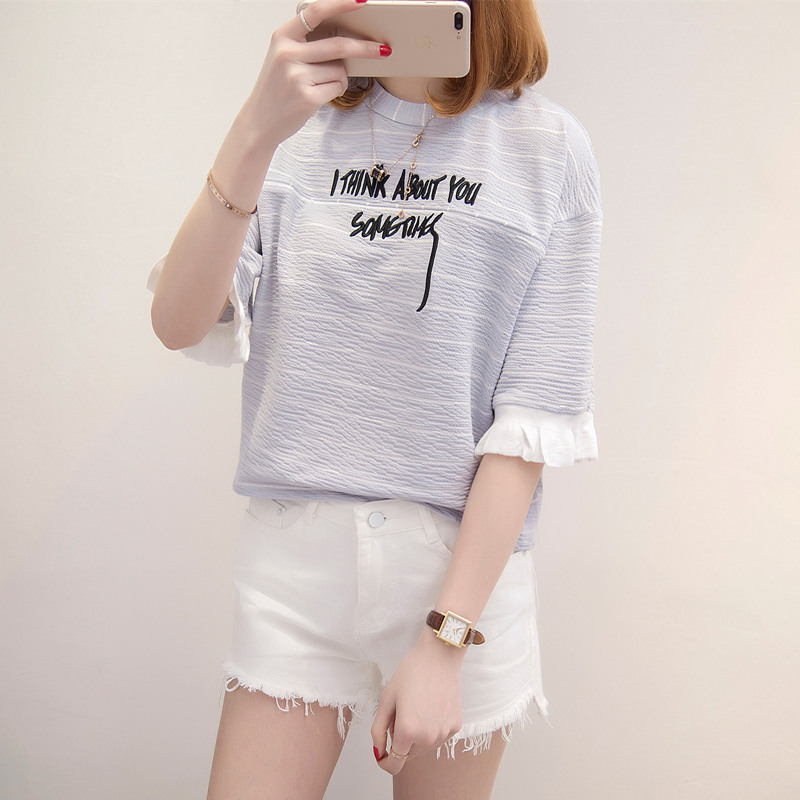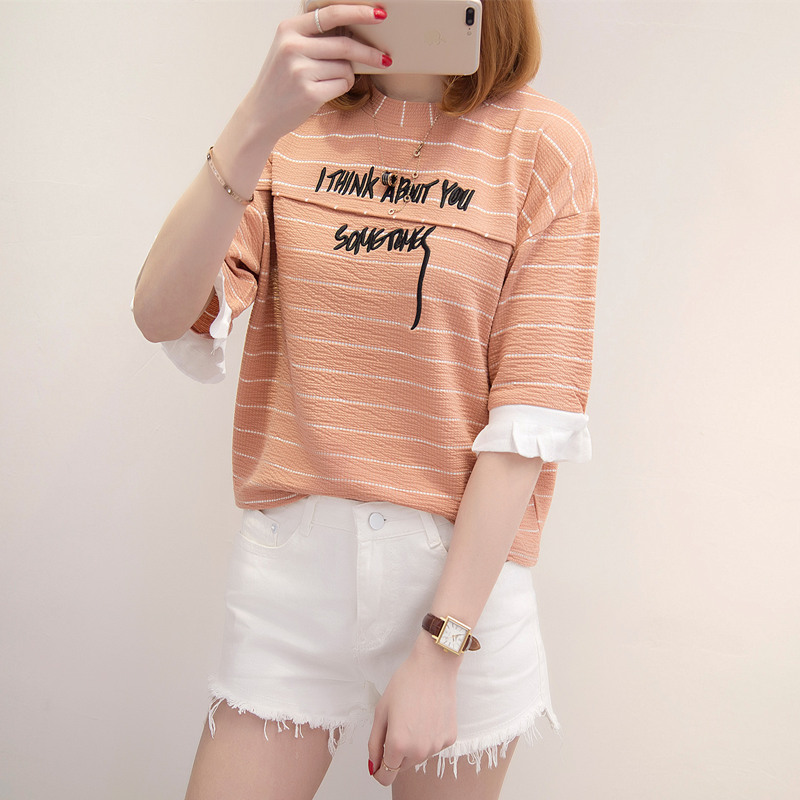 / 女學生條紋短袖t恤夏季寬松韓國新款bf風半袖寬松小清新上衣