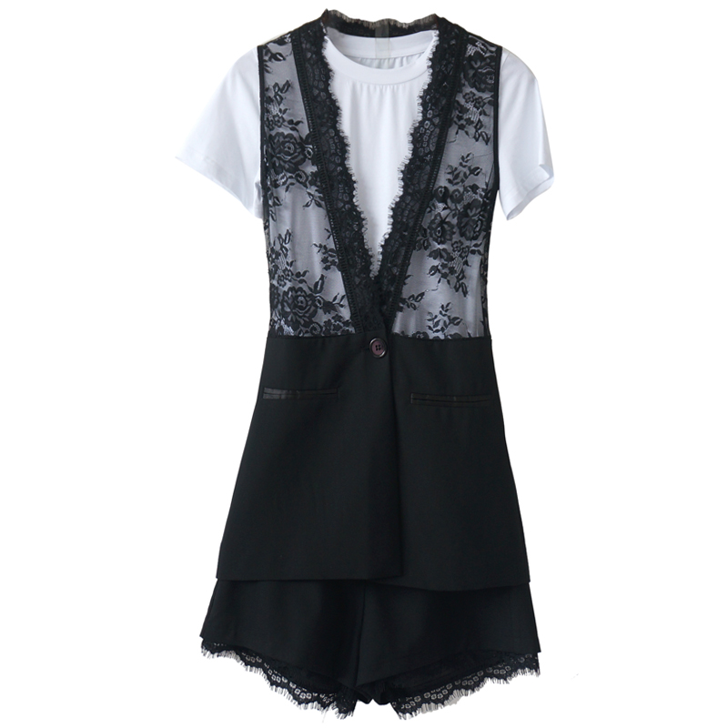 歐洲站名媛女神范夏時髦套裝2018新款上衣馬甲T恤褲子時尚三件套