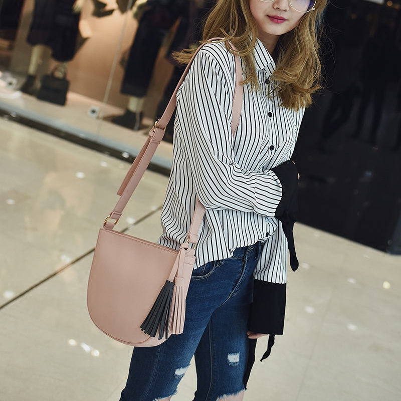 包包女新款潮撞色流蘇單肩包韓版時尚女包小包簡約百搭斜挎包
