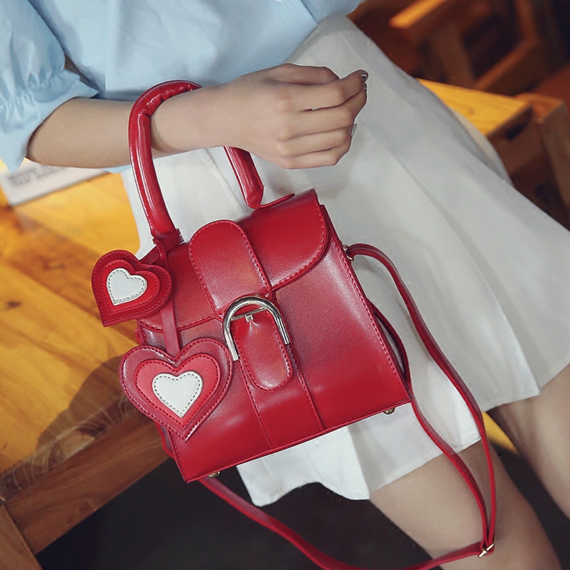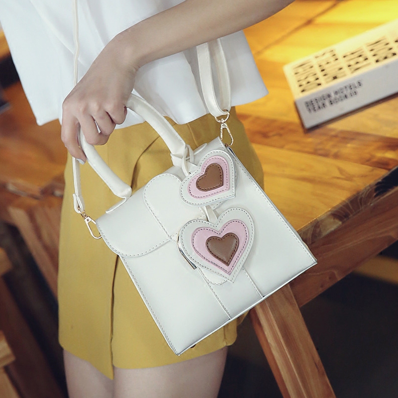 / 包包女新款潮撞色愛心掛件手提包韓版單肩女包小包百搭斜挎包