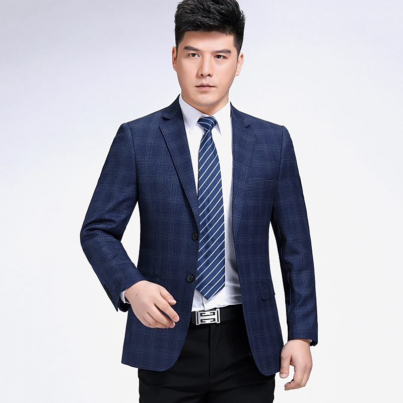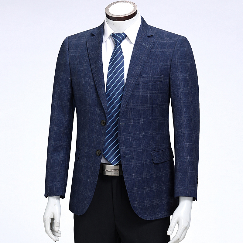 / 2018春裝新款品牌中年男士羊毛西服休閑男裝上衣格子單件西裝外套