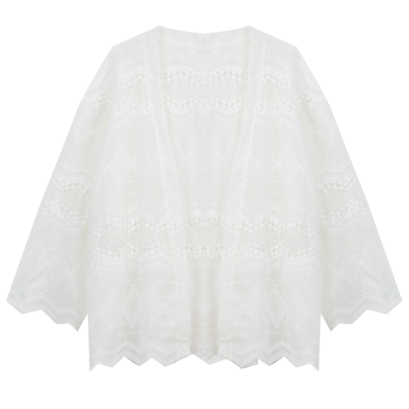 純色無扣蕾絲防曬衫,簡約純粹又不失張力
