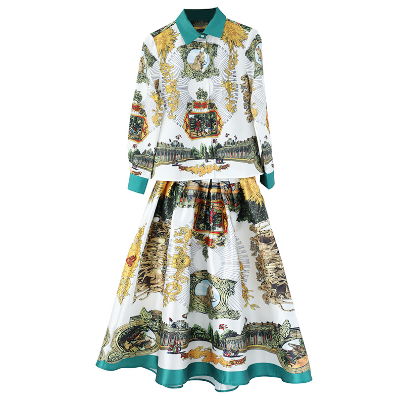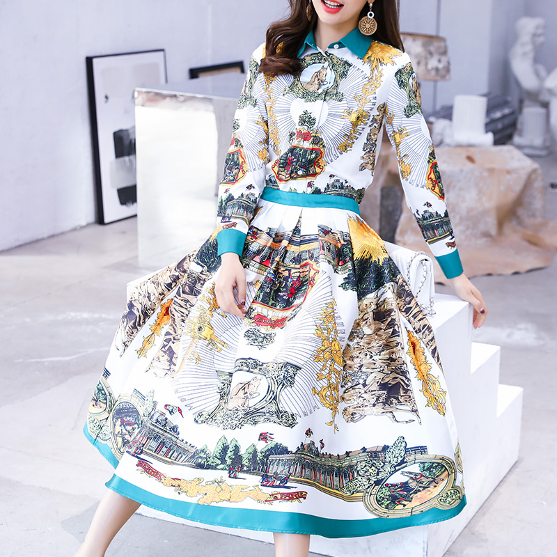 / 名媛氣質女神范襯衫OL顯瘦中長款網紅半身裙印花兩件套裝公主裙潮