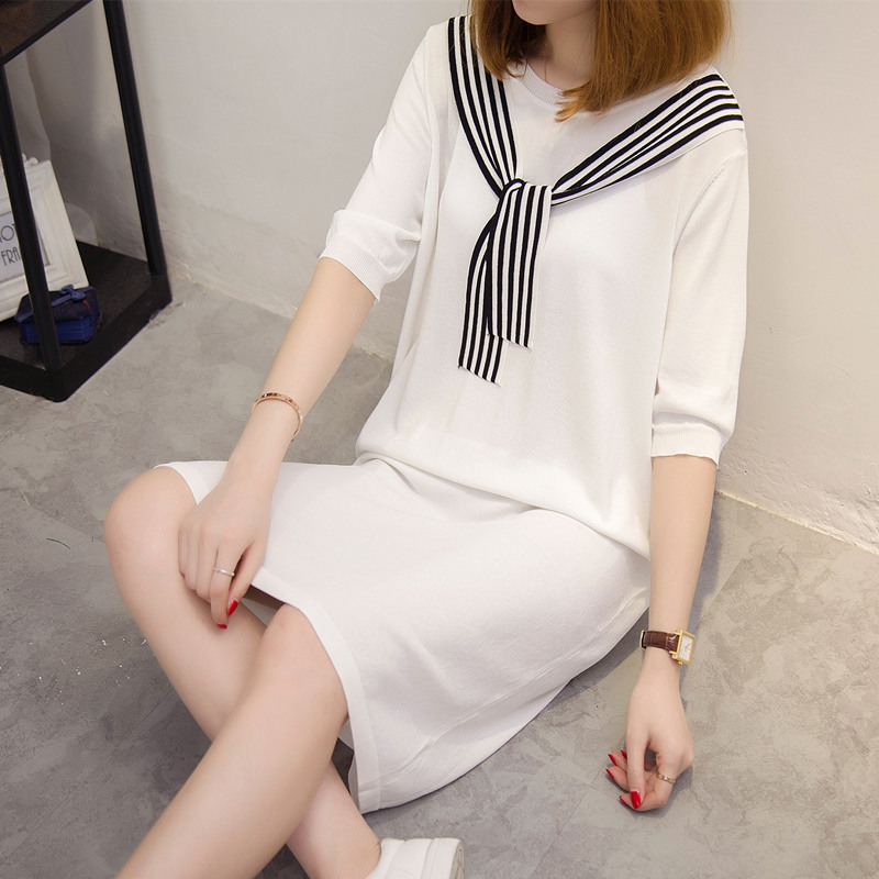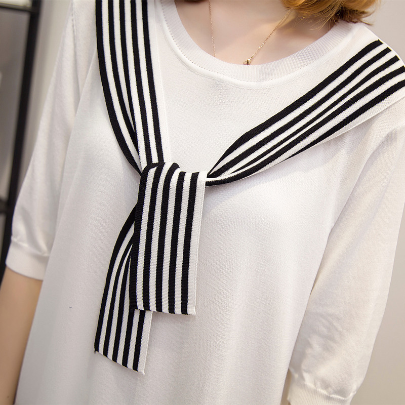 / 短袖上衣女夏新款白色中長袖t恤女春季針織衫韓版打底衫百搭