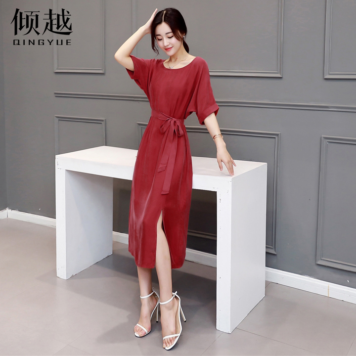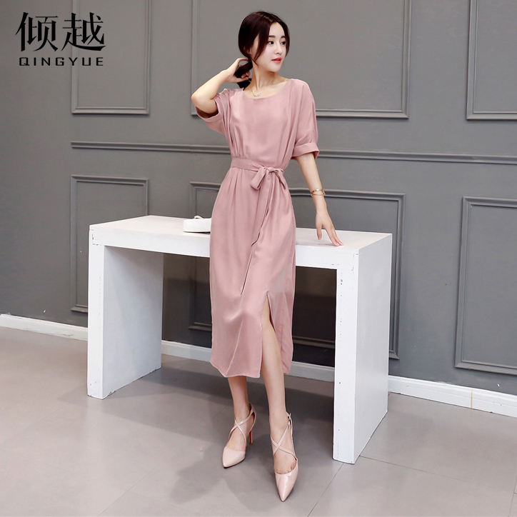 傾越連衣裙女夏季中長款短袖韓版顯瘦淑女2017春夏裝新款名媛裙子