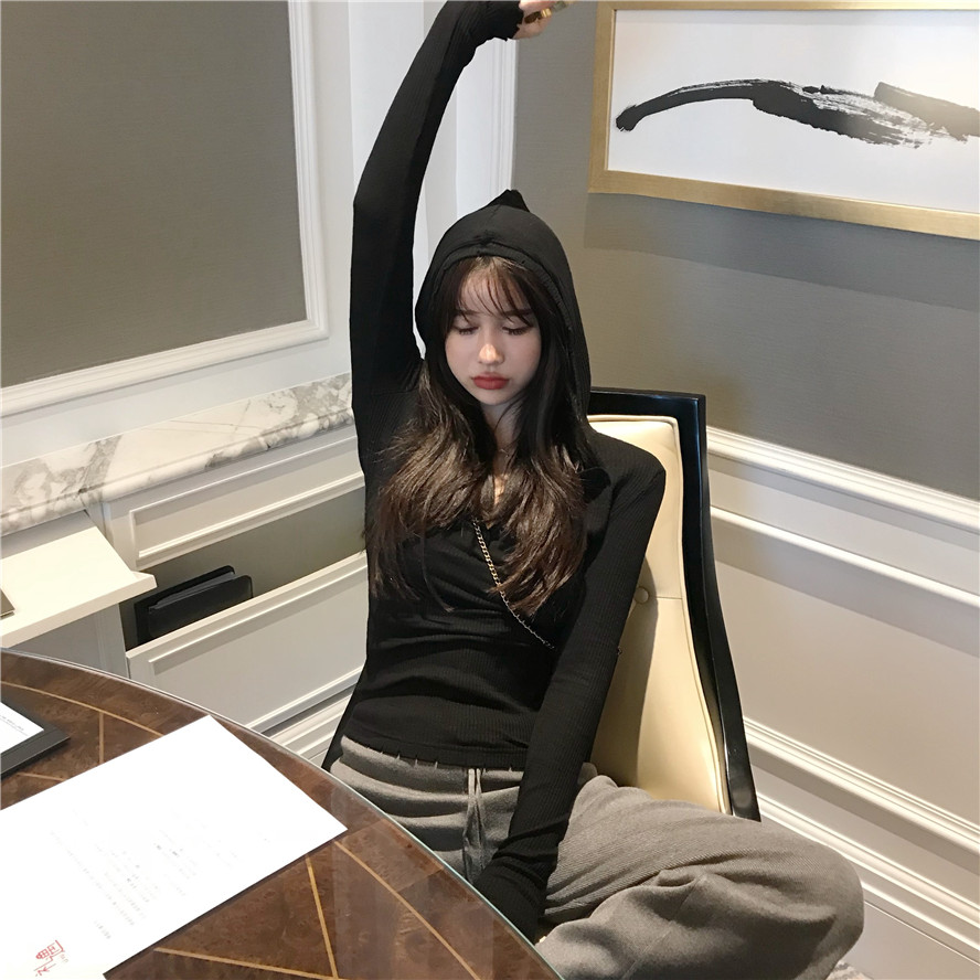 2018秋裝新款韓版網紅連帽打底針織緊身上衣chic顯瘦長袖毛衣女潮