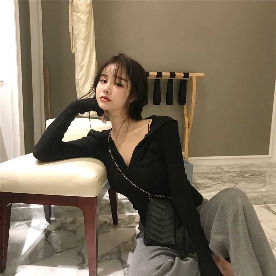 / 2018秋裝新款韓版網紅連帽打底針織緊身上衣chic顯瘦長袖毛衣女潮