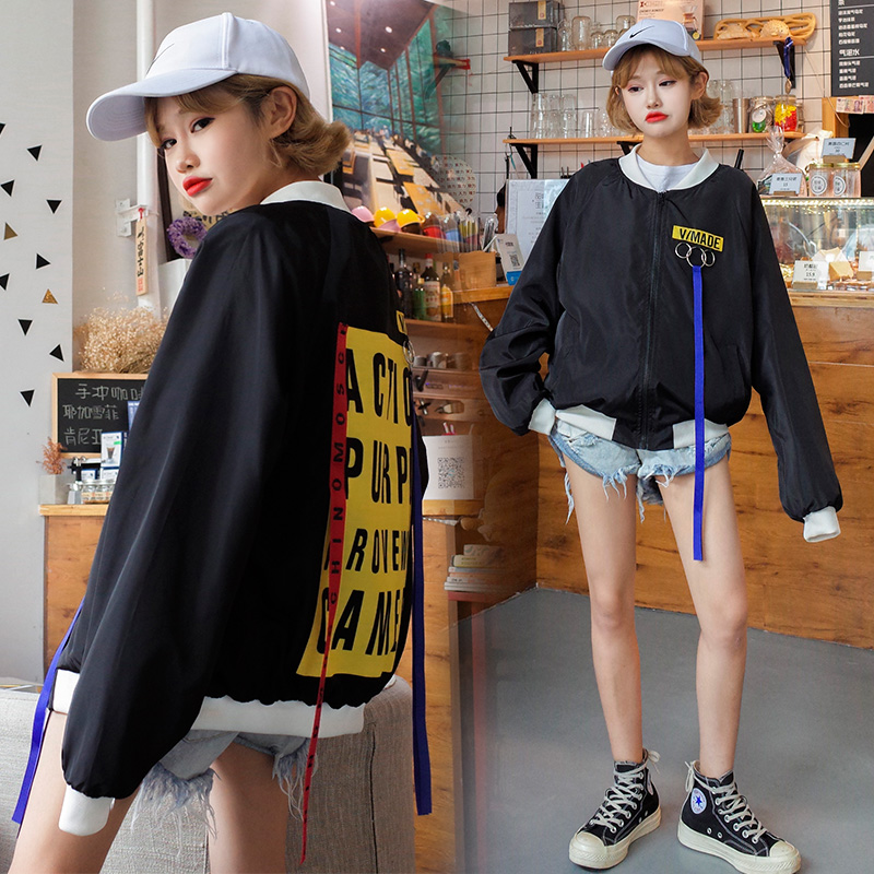 / 春秋裝短外套女韓版寬松褂子2017新款學生貼布飄帶百搭上衣bf潮