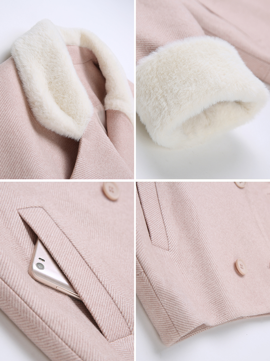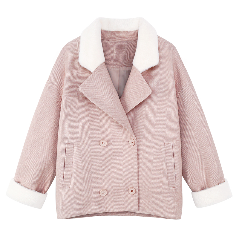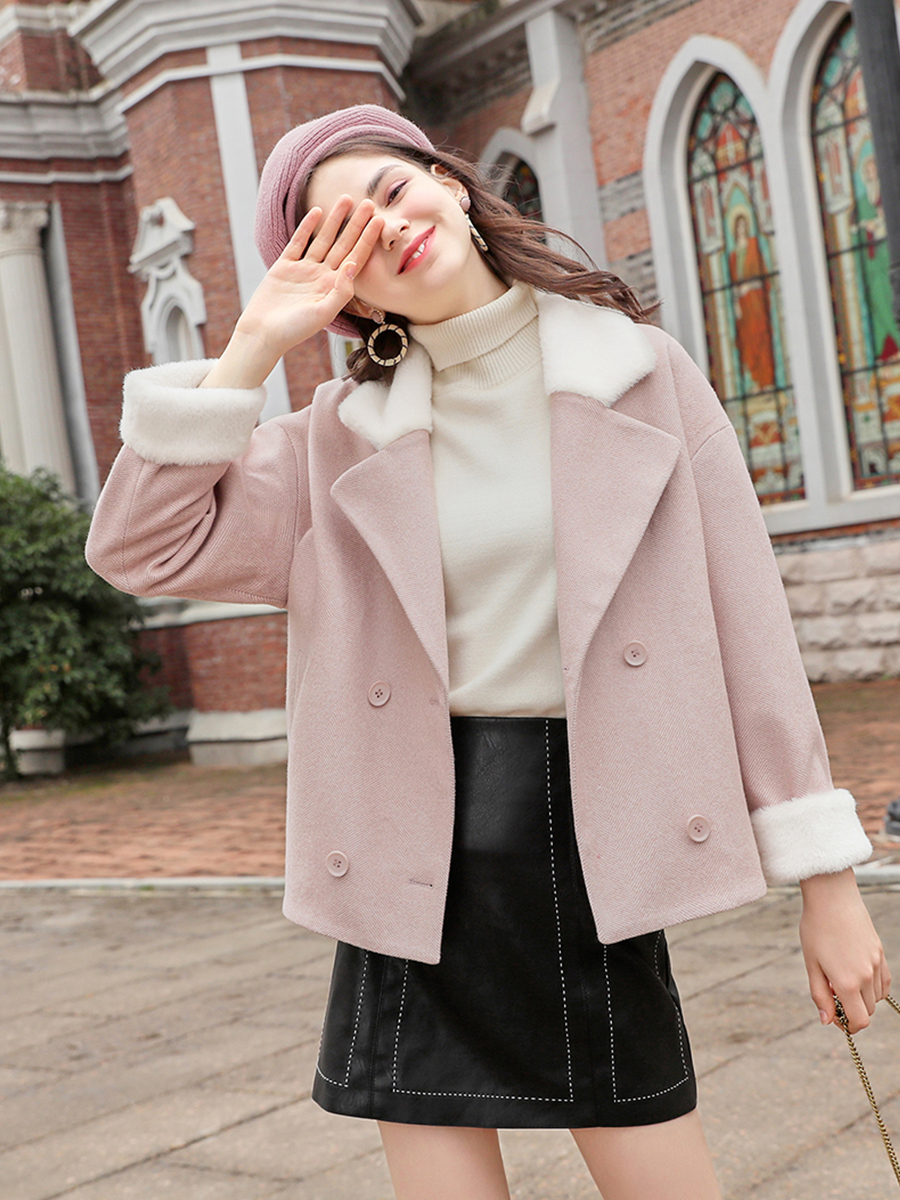 MG小象粉色毛呢外套女學生短款甜美上衣冬季新款小個子呢子大衣潮