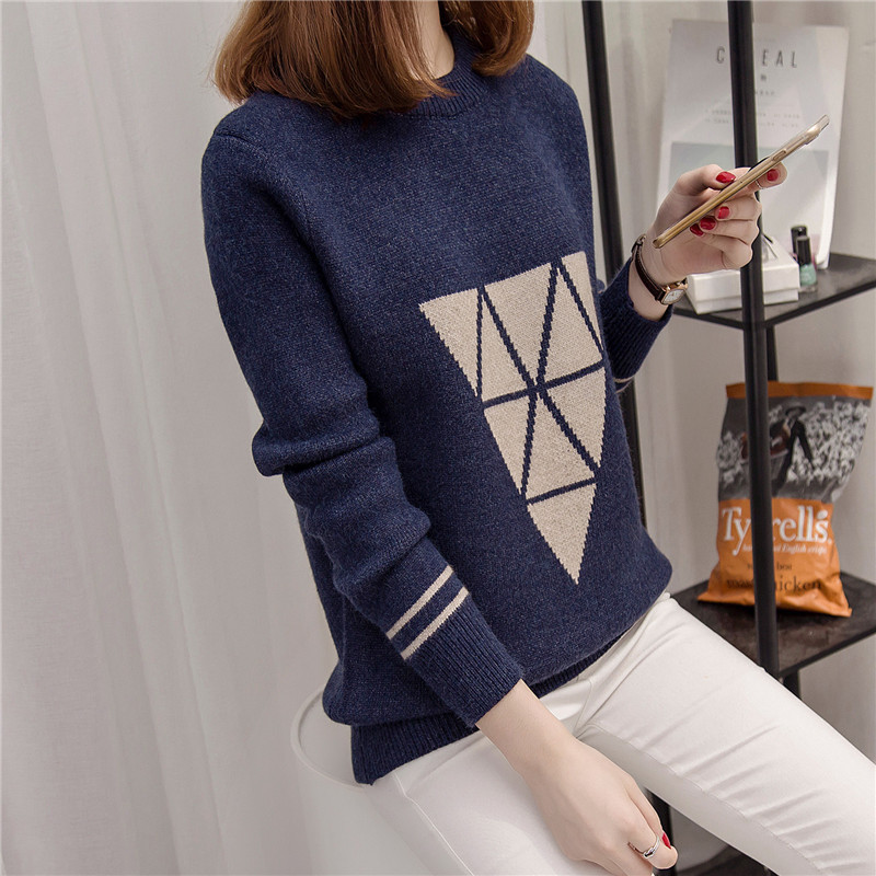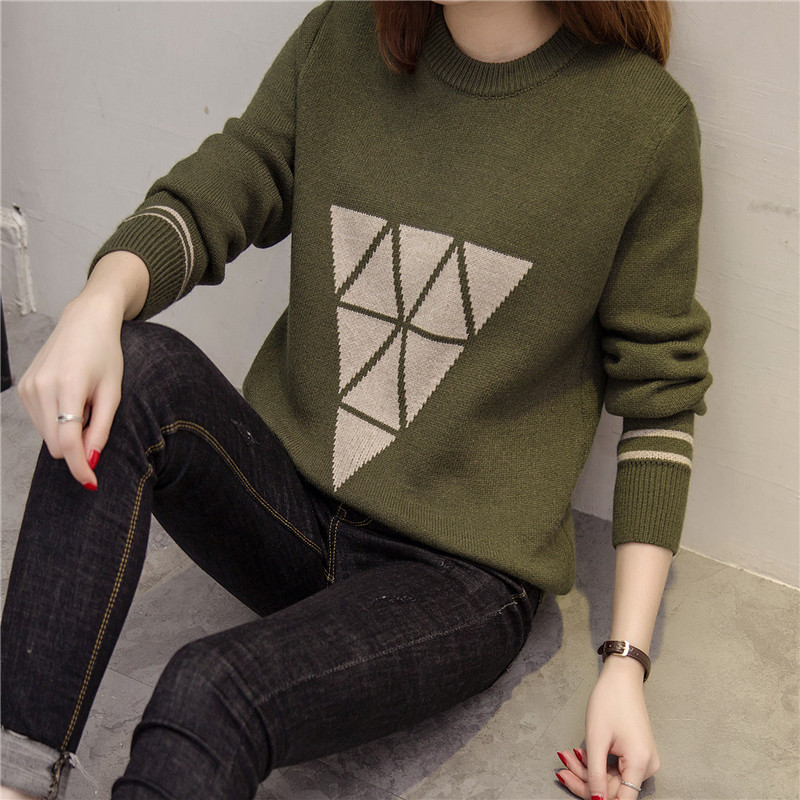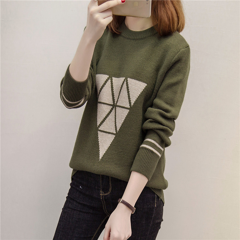 長袖打底衫圓領套頭寬松針織衫女上衣秋冬季加厚毛衣外套女裝潮
