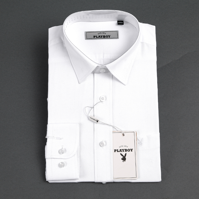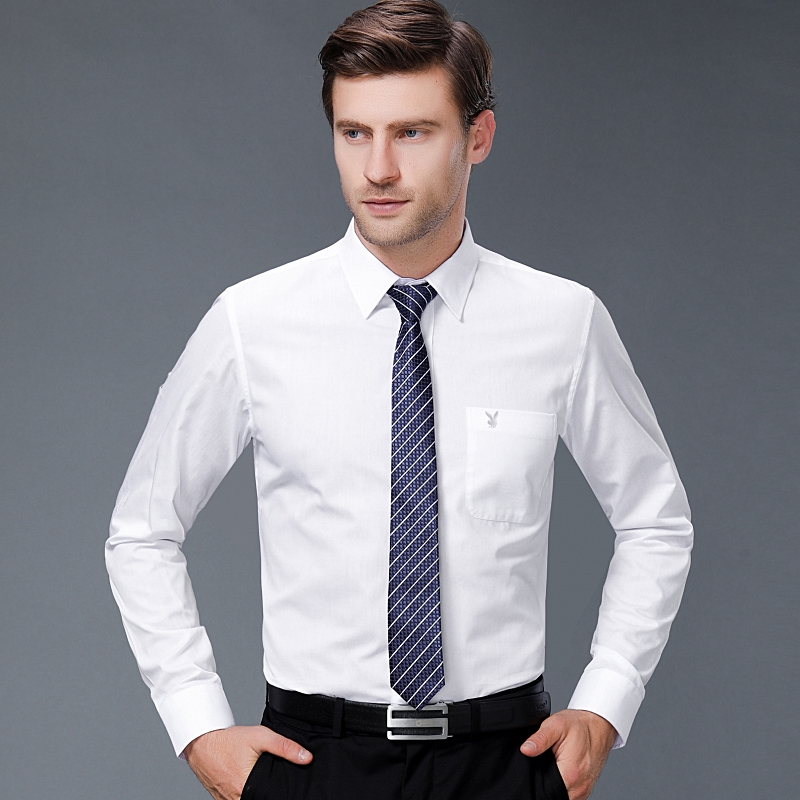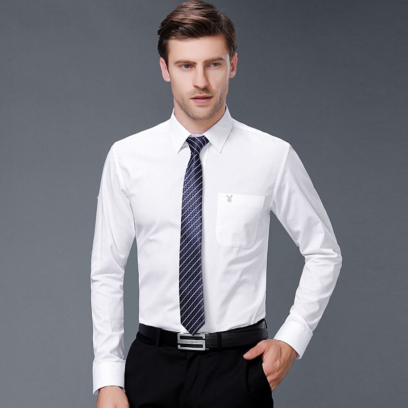 / 2018秋裝新款品牌中年男士白色長袖襯衫商務休閑男裝純棉免燙襯衣