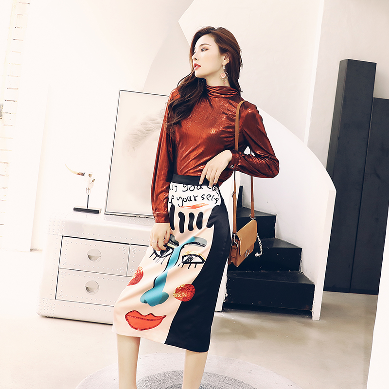秋裝女神2018新款連衣裙兩件套網紅長袖打底衫高腰半身裙港味套裝