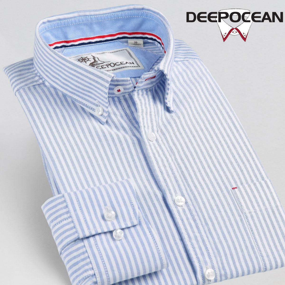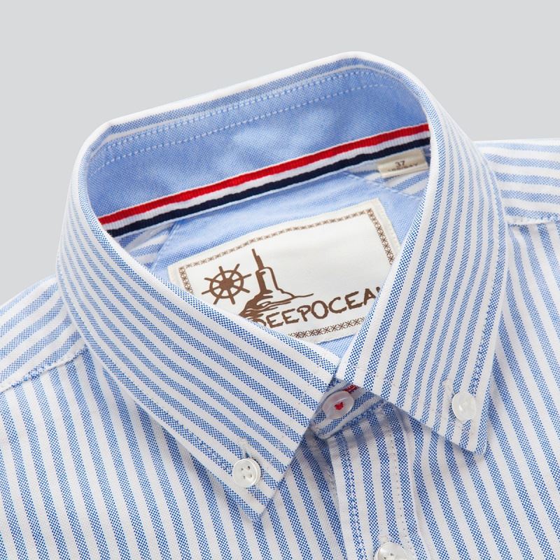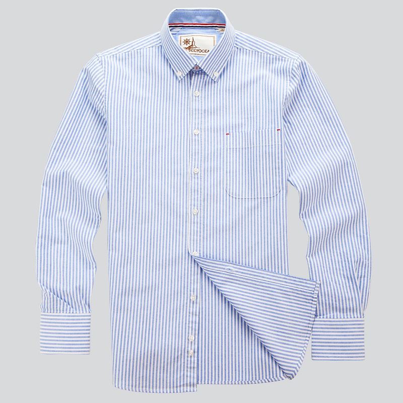 / 春季水洗粉紫色條紋牛津紡襯衫男長袖韓版修身休閑純棉襯衣