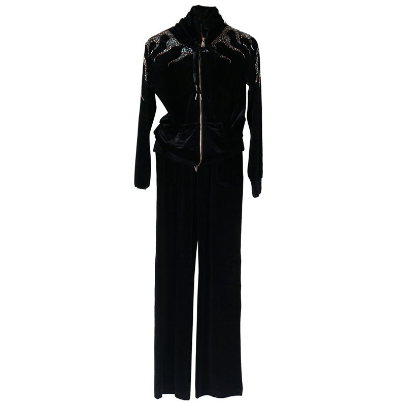 / 2018春季新款韓版跑步運動黑絲絨休閑套裝時尚修身顯瘦兩件套女潮