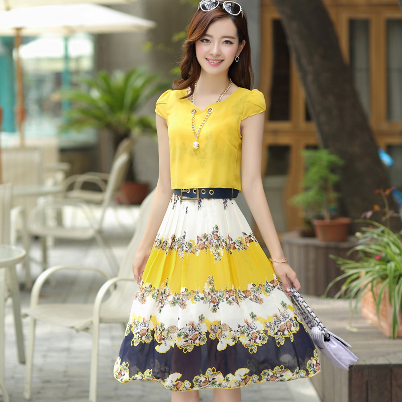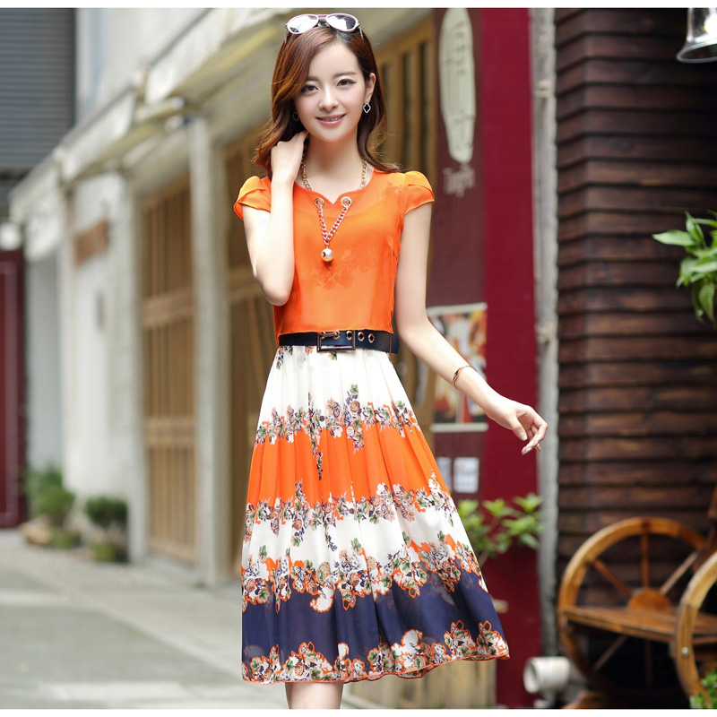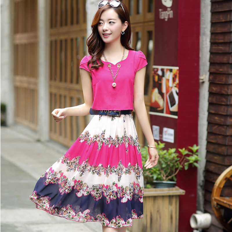 / 夏季新款女裝韓版氣質雪紡連衣裙中長款修身顯瘦大擺公主裙潮