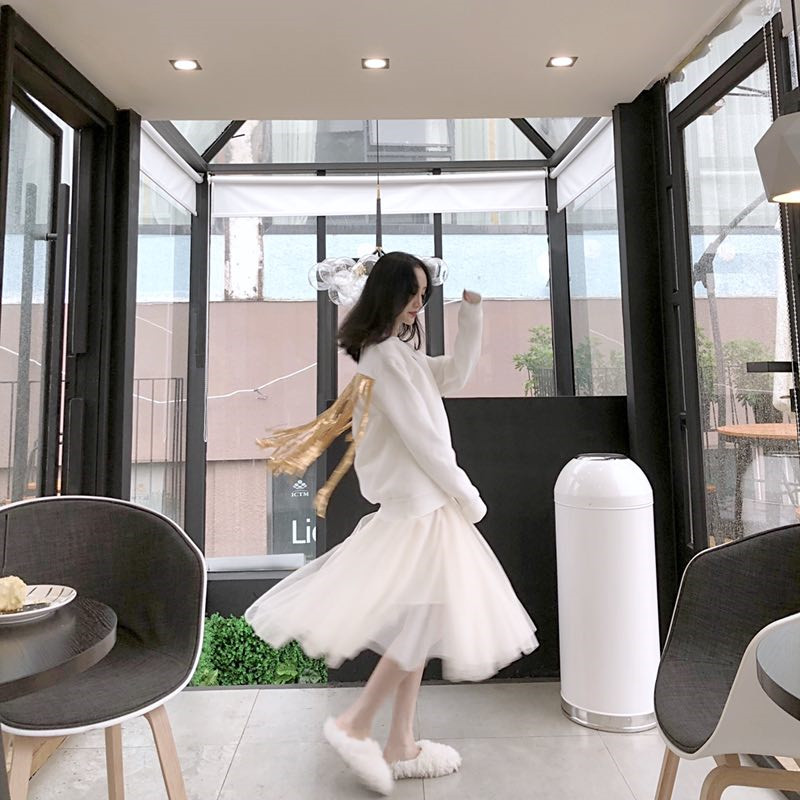 白色上衣|白色網紗裙