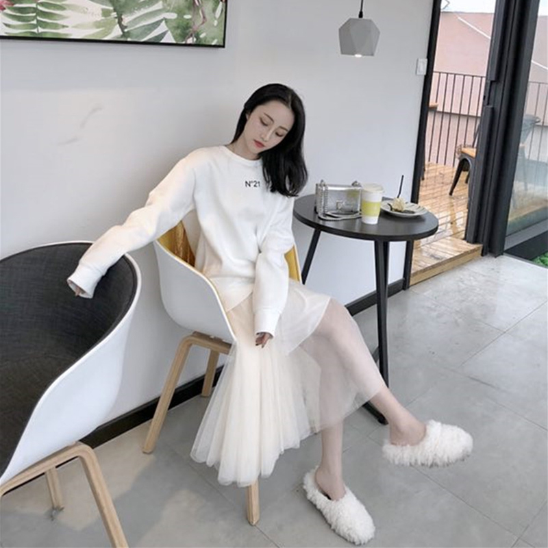/ 2018秋裝新款韓版套裝后背亮片流蘇衛衣A字網紗裙兩件套時尚女裝