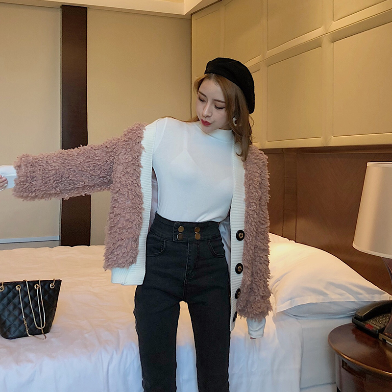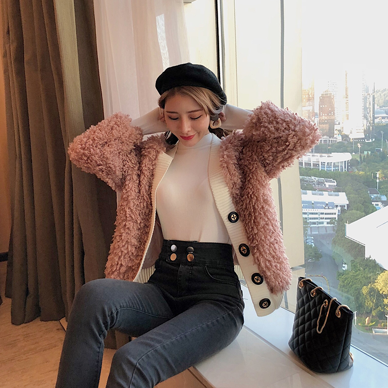 / 秋冬新款毛毛加絨單排扣保暖外套時尚chic長袖寬松顯瘦女裝開衫潮
